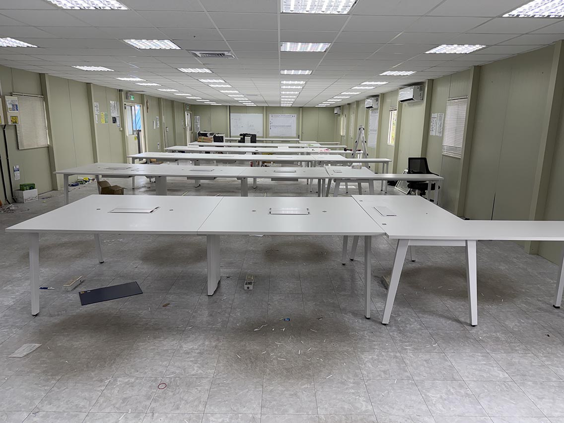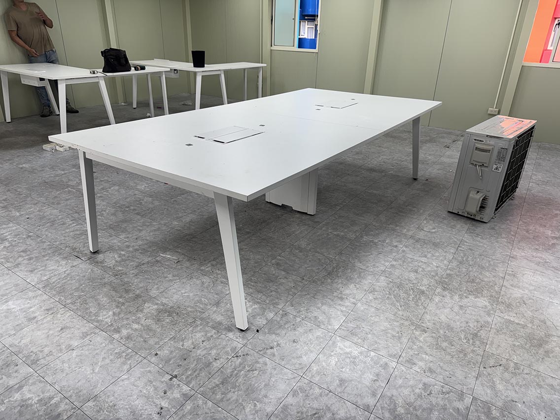 6人工作站 總長420*總寬140*高75cm有6組...桌面配置3個走線盒座..可將電源.網路.電話安裝於盒內..
